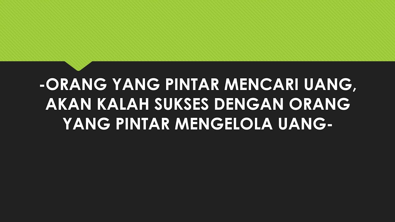 Orang yang pintar mencari uang, akan kalah sukses dengan orang yang pintar mengelola uang.